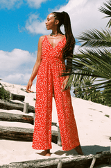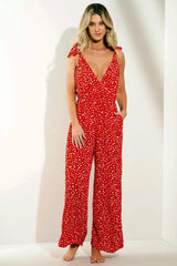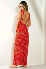 - Plunge neck red jumpsuit