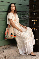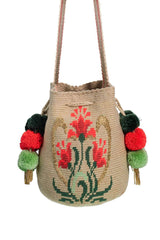 All Najash pieces have a special connotation, the mix of two different artisans techniques of Colombian Indigenous communities. This Mochila Wayuu was made by indigenous artisan in the northeast of Colombia, La Guajira, inspired by ancient techniques passed down over millions of years. The accessories are made by artisans from the west center of Colombia, the indigenous community EMBERA CHAMI KURMADO inspired by their God Karavi.