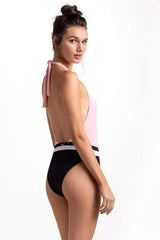 - Pink & black color block one piece